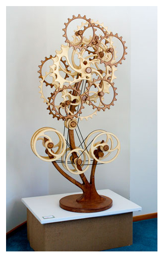 I was inspired by David C. Roy, a famous artist who specializes in making kinetic wood sculptures. All of David C. Roy’s sculptures do not use any electricity or motors and rely on springs and forces to move. I wanted the piece to move without any involvement so I tried to use electric motors and gears to power the sculpture. I also wanted to incorporate LED lights if possible. I used his designs as inspirations but not his style of using physics to power sculptures.
